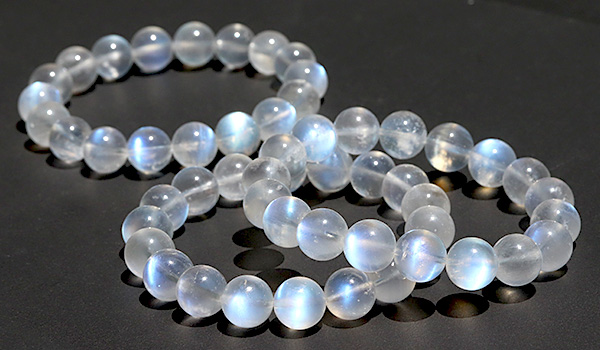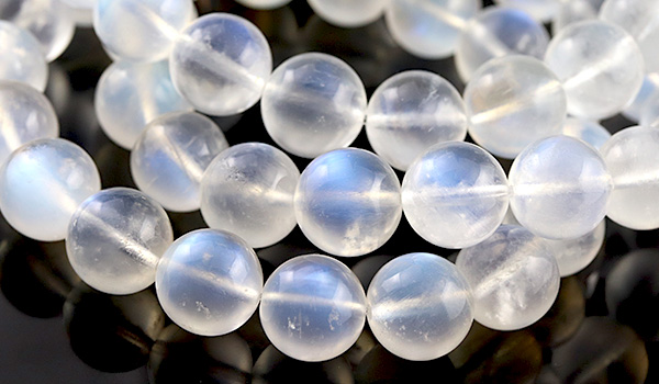 一般的なグレーから黒色の落ち着いた地色のラブラドライトは異なり、白っぽい半透明から不透明な地色をもつホワイトラブラドライトのうち、青色の光が浮かぶものがブルームーンストーンとして流通しています。