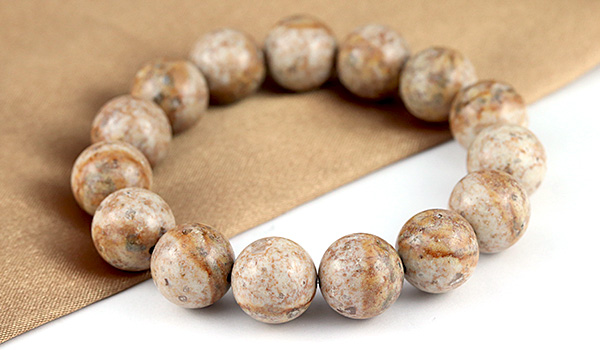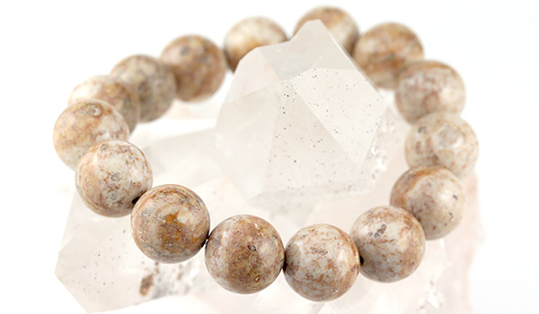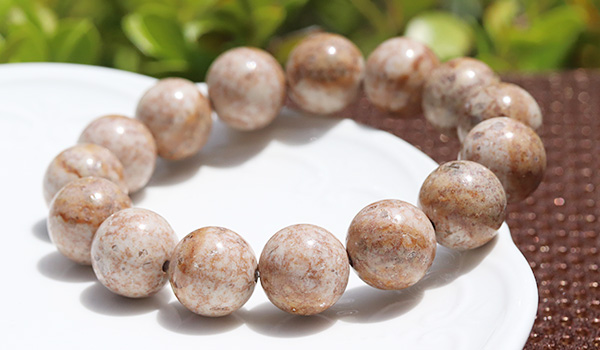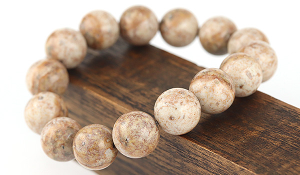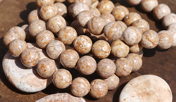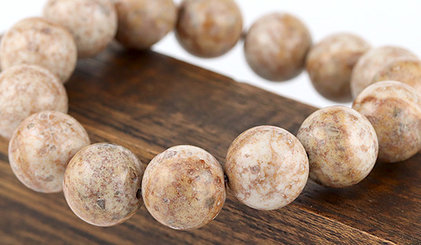 今回入荷できた姫川薬石は地色がアイボリーベージュのような色合いで、表面には茶色の内包物が模様を描くかのように現れています。