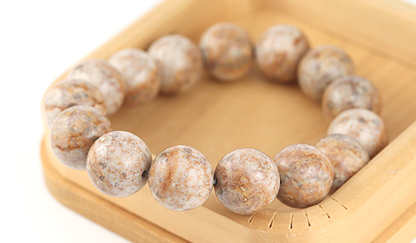 見られる模様はビーズによって異なり、ぐるりとビーズを横断するようにラインを描いているかのようなものや、点々と全体的に散らばっているようものもあり、優しく素朴な色合いのなかに浮かび上がる自然の息吹を感じられる見た目になっています。