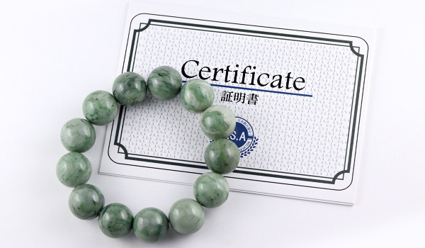 こちらの日高ヒスイのブレスレットには、日本産の鉱物であることを保証するギャランティカードを一緒にお届けいたします。
