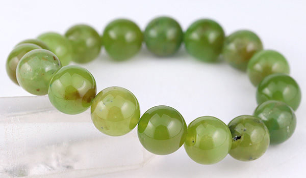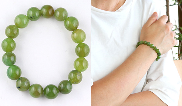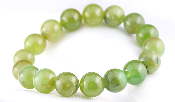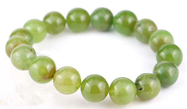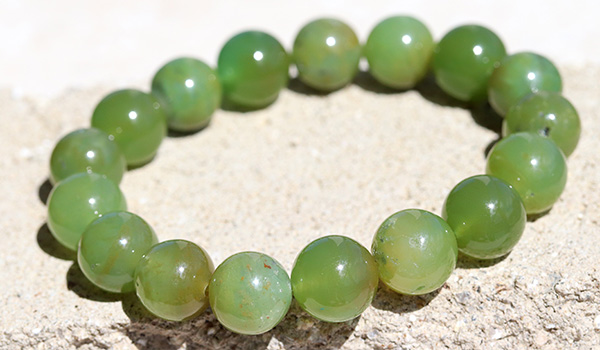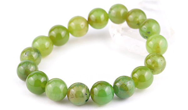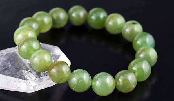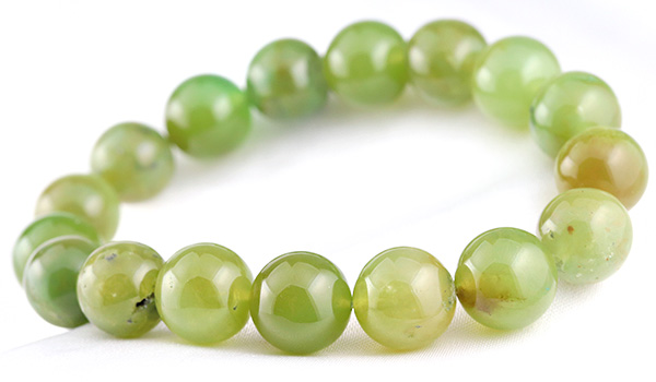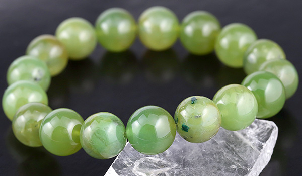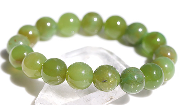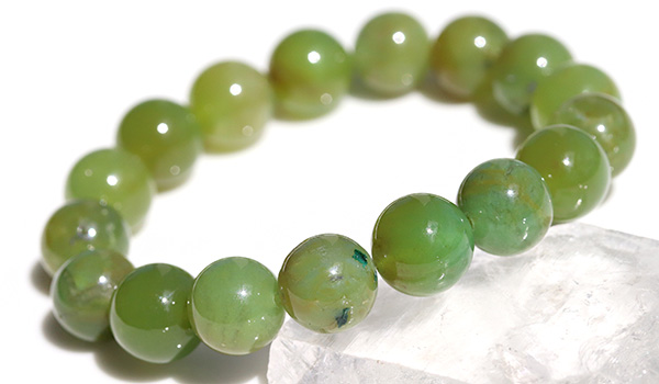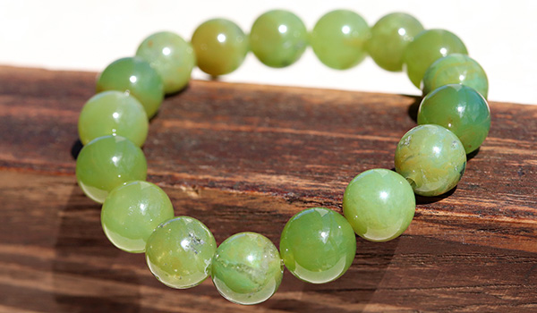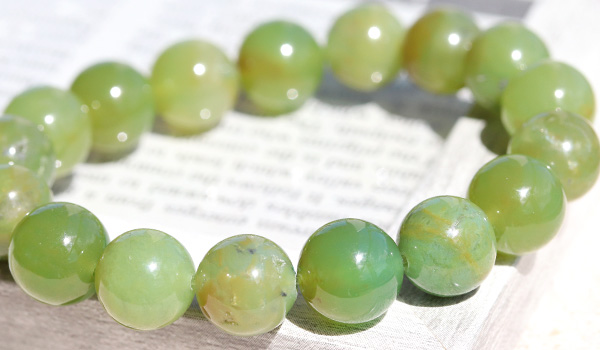 今回のブレスレットに使用していますのは、やや黄色みの強いうぐいす色の印象が強いジェムシリカ。