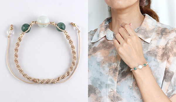またビーズを使ったブレスレットとは異なり、その日の気分やファッションに合わせた細かなサイズ感に対応できますので、緩めやキツめといったお好みの装着感でパワーストーンブレスレットをお楽しみいただけるのも、このブレスレットの特徴です。