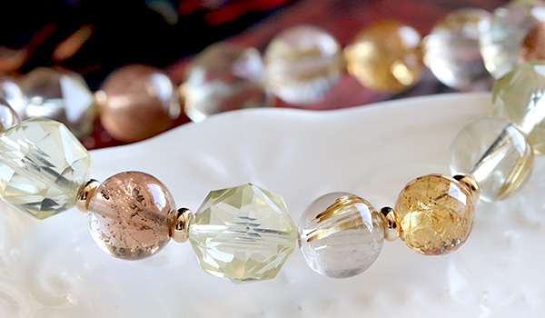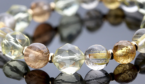 シャンパントパーズ8〜8.5mm、レモンクォーツ[スターカット]10mm、タイチンルチルクォーツAAAA8mm、インペリアルトパーズ[ミラーカット]7〜7.5mm