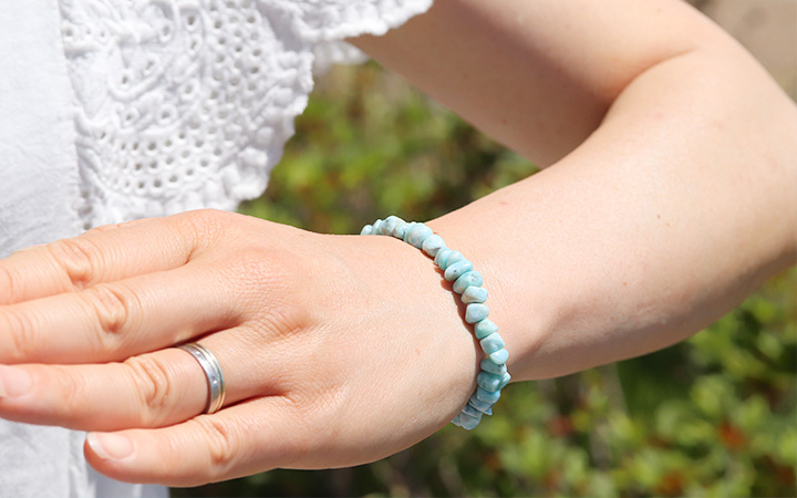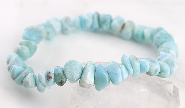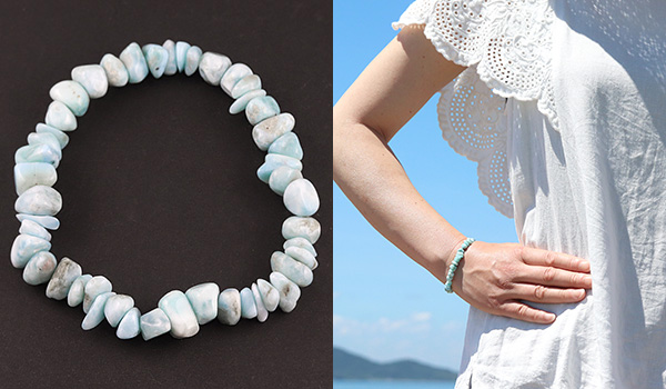 ●万人から愛される優しい色合いと、魅力的なマーブル模様が特徴のラリマーのさざれを使用したブレスレット