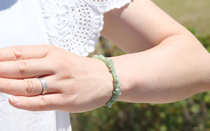 石を磨かないままのさざれパーツをシンプルに繋いだブレスレットだからこそ、