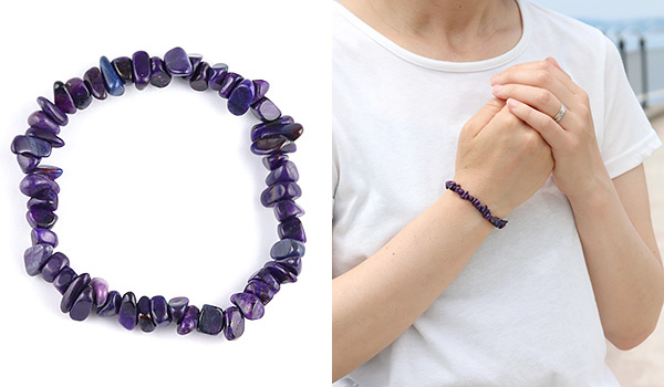 癒しの力が強いと言われていますので、こちらのスギライトはヒーリングストーンとして持つのにぴったりのブレスレットでしょう。