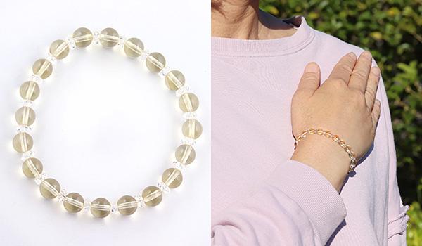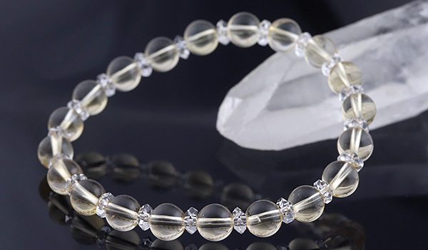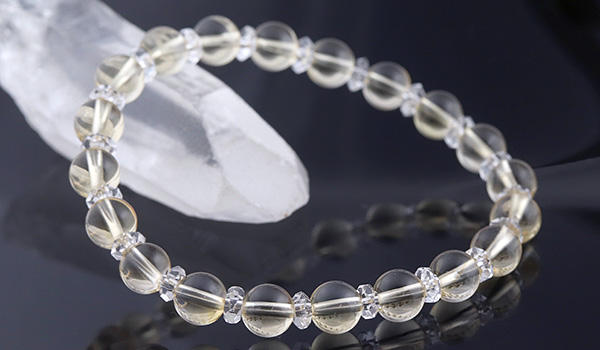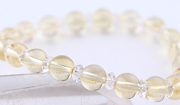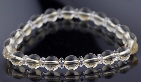 クラックもほとんど無く、透明感も抜群の高品質なシトリンと水晶の平カットとを交互に紡いだ、シンプルデザインのブレスレットです。