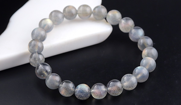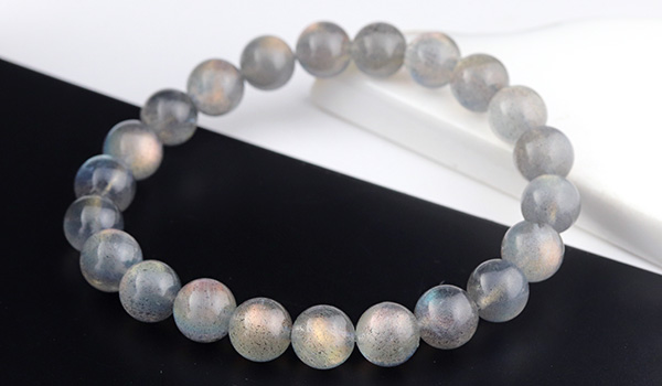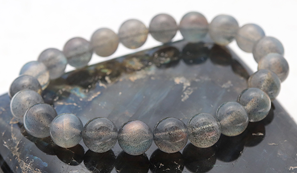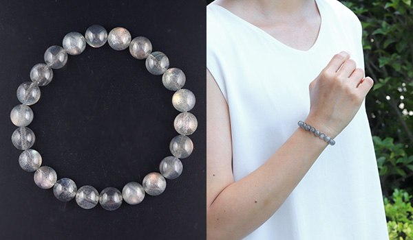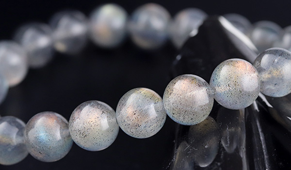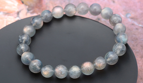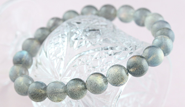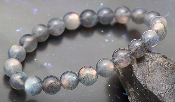 大抵のラブラドライトが浮かべるラブラドレッセンスは、ブルーやグリーンがほとんどですが、こちらのブレスレットには、ラブラドライトの夢のように美しい光彩の中でも