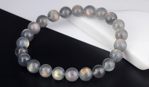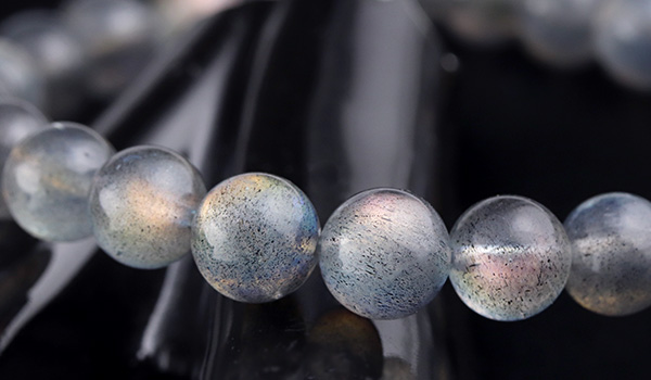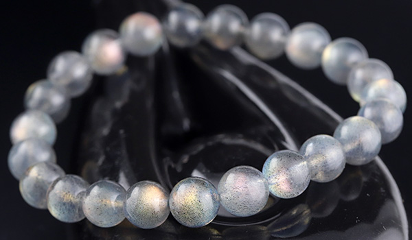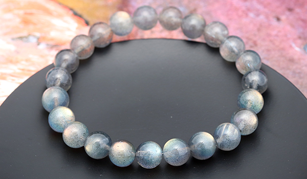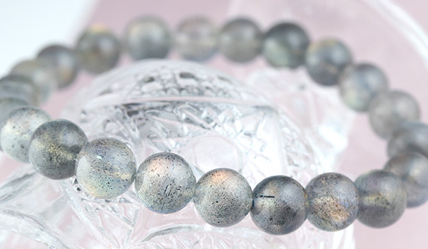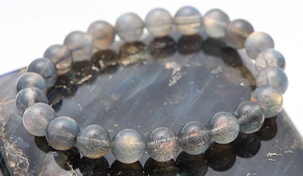 大抵のラブラドライトが浮かべるラブラドレッセンスは、ブルーやグリーンがほとんどですが、こちらのブレスレットには、ラブラドライトの夢のように美しい光彩の中でも