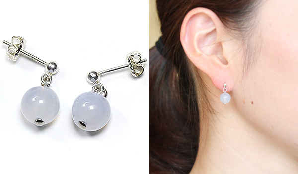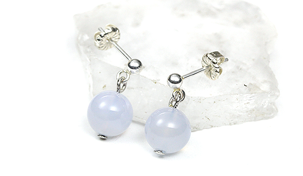 こちらでは優しい水色の発色に、半透明で光を柔らかく通すブルーカルセドニーを用いました。