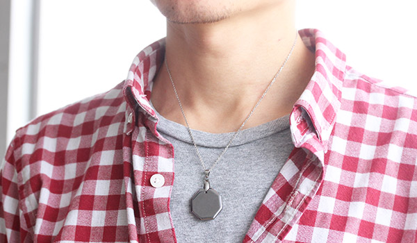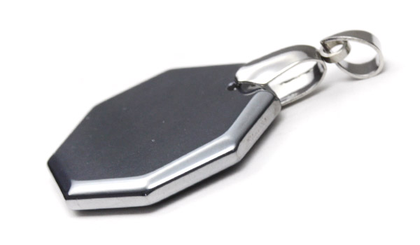 その見た目からずっしりとした重さを想像しますが、持ってみると意外なほどに軽いという、何とも不思議なテラヘルツ鉱石を、オクタゴン(八角形)のプレートペンダントにしてご紹介します。