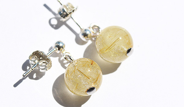 こちらでは針の色や入り方によって様々なバリエーションを持つルチルクォーツの中から、一番人気でスタンダードなゴールドカラーのルチルクォーツを用いました。