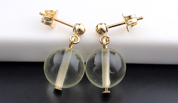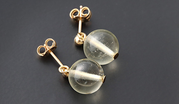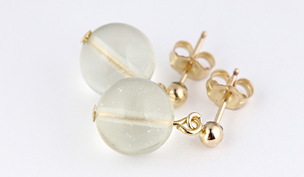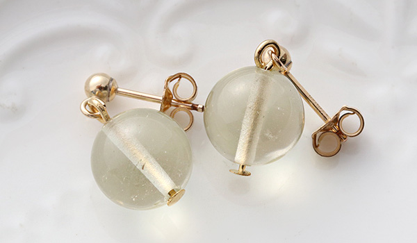 そのため今回はSAグレードの高品質リビアングラスに、K14ゴールドフィルド素材のピアスパーツを組み合わせました。