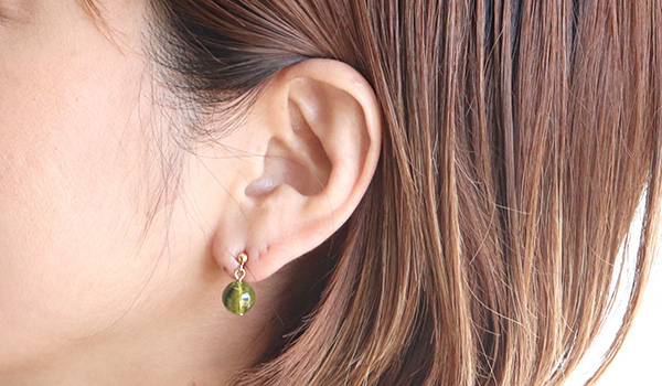 シンプルなデザインですのでペリドットの美しさが際立ち、どのようなシーンでも身に着けやすいピアスに仕上がりました。