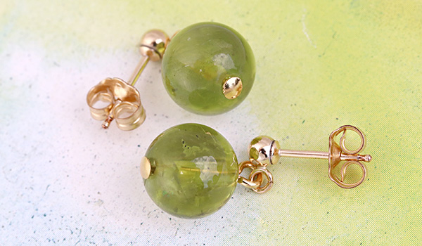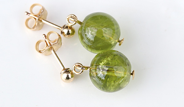 そのため今回はAAA'グレードのペリドットに、K14ゴールドフィルド素材のピアスパーツを組み合わせました。