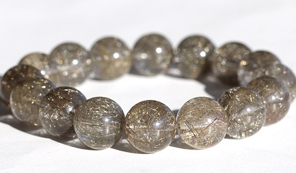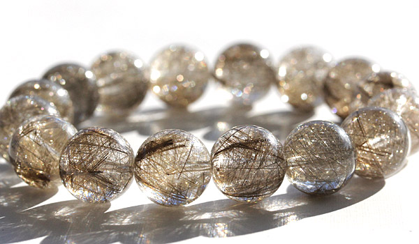 標準的なゴールドカラーのルチルクォーツと比べると、原石の産出量が少ない上、最近では採掘量も減少しているシルバールチルクォーツ。