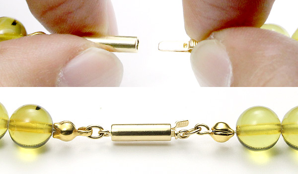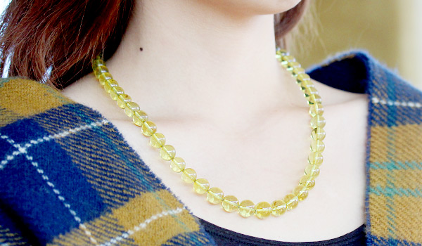 本当に少量ですが、こんなに美しいグリーンアンバーのみで仕立てられたネックレスはそうそうお目にかかれません。