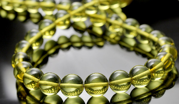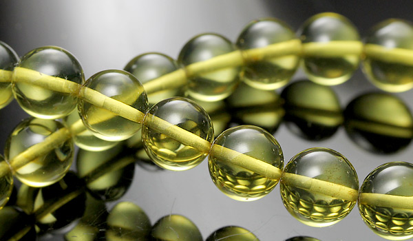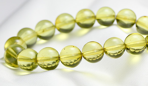 最初に見たときには「ペリドット?」と思ってしまうような色合いと太陽に輝く草原を思わせるフレッシュなエネルギーを感じ、手に取るまでそれがアンバーだとは気付かないほどの見事なグリーンアンバーです。