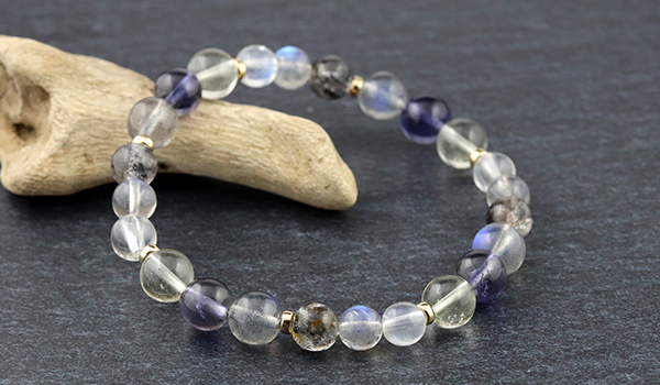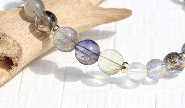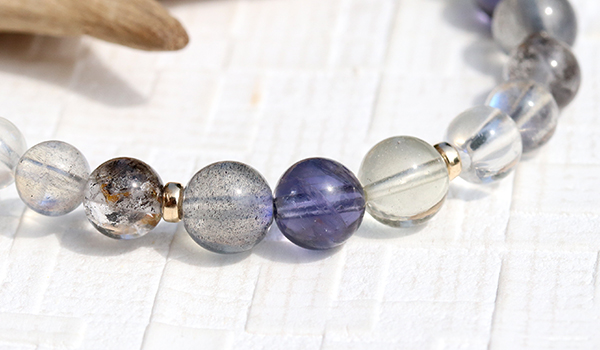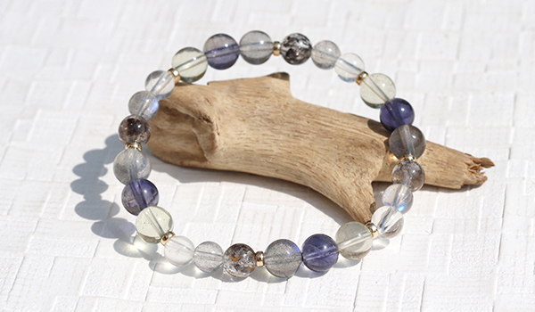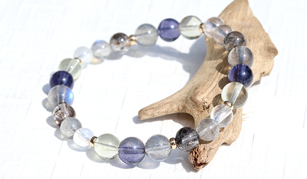 アイオライトAAAA7mm、リビアングラスAAA7mm、ラブラドライトAAAAA6mm、ロイヤルブルームーンストーンAAAAA6mm、ヒマラヤエレスチャルAAA6mm