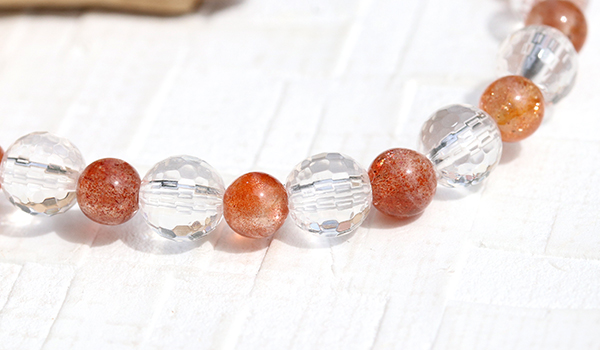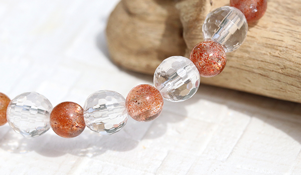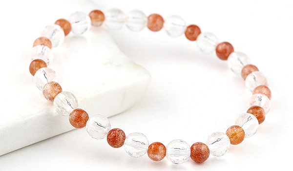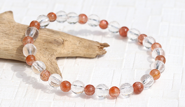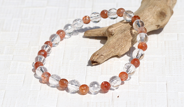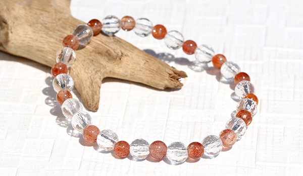 手首に纏う時、あなたは高品質サンストーンが持つ光と炎が入り混じったような明るいエネルギーが更に水晶によって増幅されたエネルギーにに包まれることになります。