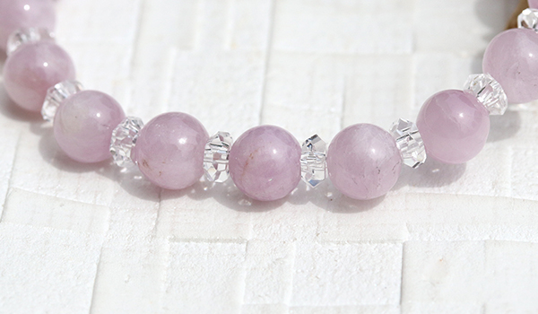 とても可愛らしく、美しさの中に儚げな印象を少しだけ持ったピンククンツァイトキャッツアイのハーモニーブレスをご紹介します。