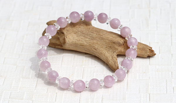 素通しのブレスレットにはない華やかさをプラスし、エネルギー的な調和も増し、