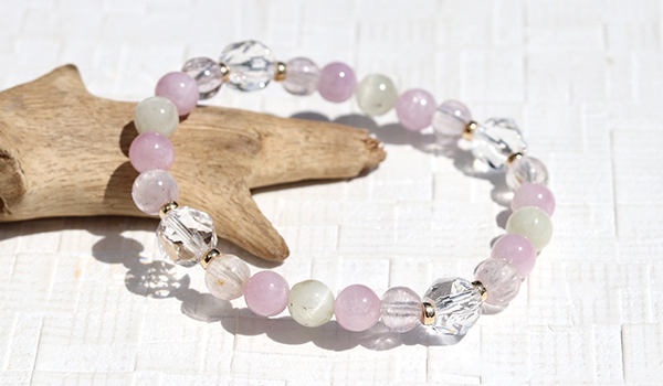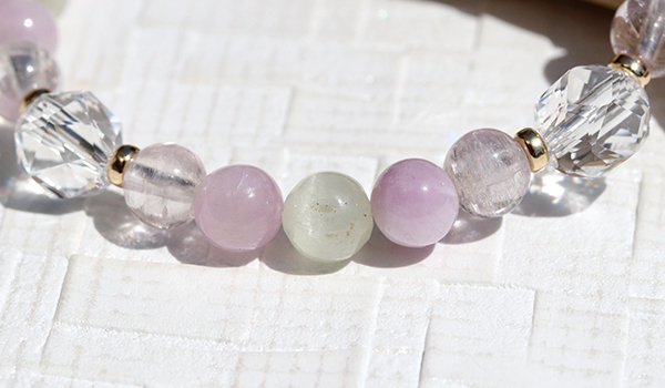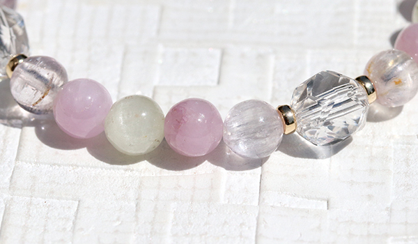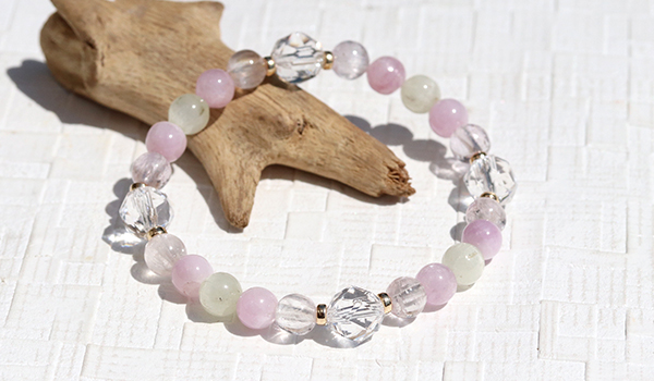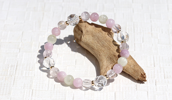 3種類の可愛らしいクンツァイトを組み合わせたハートチャクラに愛を巡らせるブレスレット《満ち、溢れ、巡る》をご紹介します。