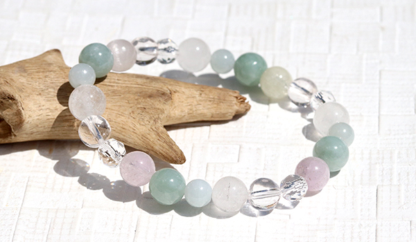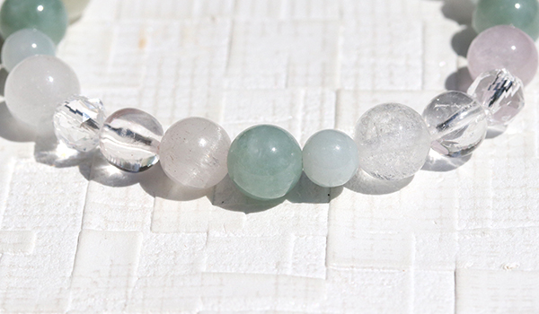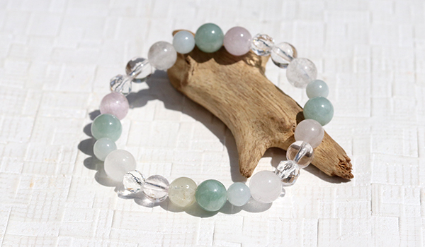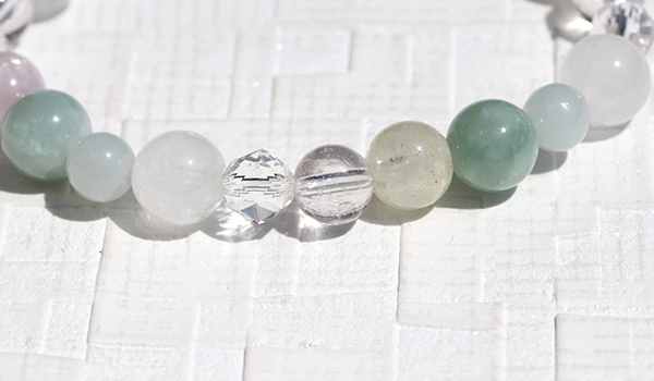 ラベンダー翡翠と緑翡翠、そしてヒマラヤ水晶もそれぞれの役割を持っており、《巡る慈愛》はこの2つの石の影響力をかなり強く発揮することができるブレスレットです。